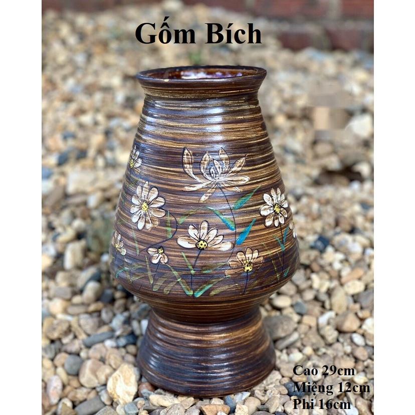 Bình hút lộc sơn mài vẽ hoạ tiết Gốm sứ Bát Tràng cao cấp Cao 24cm bụng rộng 22cm Giá 550k