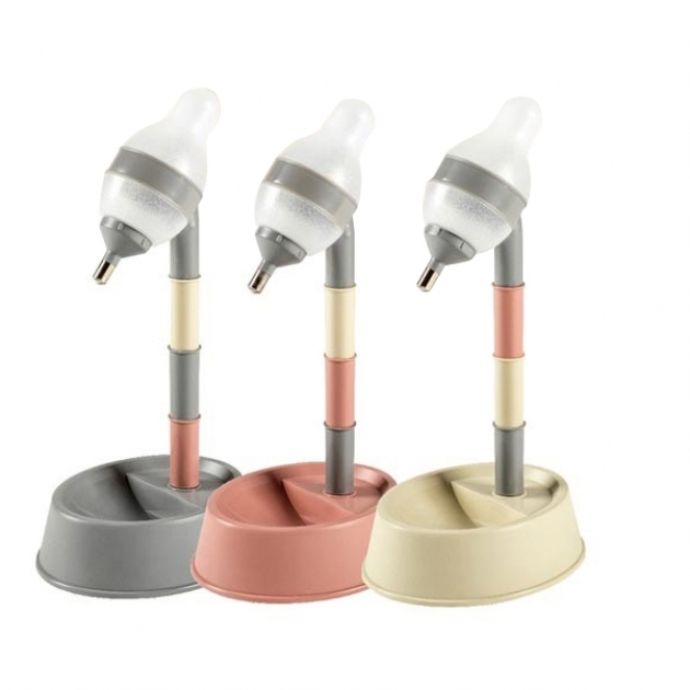 Bình nước kết hợp bát ăn có khấc Purmi có 3 màu: hồng, xám, kem với chất liệu thân thiện với môi trường (chất liệu propylene thường sử dụng trong các sản phẩm đựng đồ