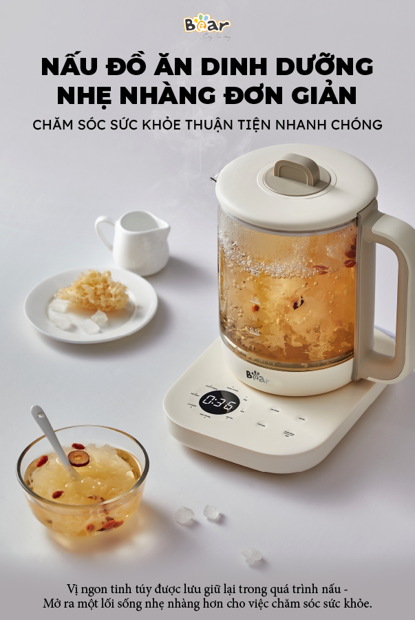 Tích hợp nhiều tính năng: Bạn hoàn toàn có thể tận hưởng sự tiện lợi và thú vị khi nấu nướng, trong suốt quá trình sử dụng chiếc bình pha trà giữ nhiệt Bear. Với những tính năng đặc biệt như đun nước - nấu đồ ngọt - nấu cháo trắng - canh thuốc - pha trà - nấu súp - giữ ấm - hẹn trước, giúp đơn giản hóa quá trình chế biến món ăn.