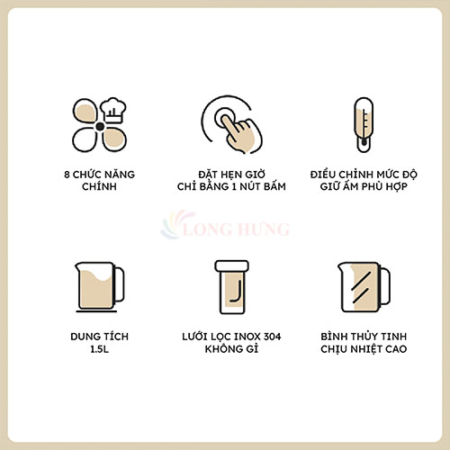 - Bình đun 2 trong 1 - Thiết kế nhỏ gọn - Giữ ấm 8 cấp độ - Màn hình hiển thị - Dễ dàng mang theo - Vật liệu bền bỉ - Vòng đế