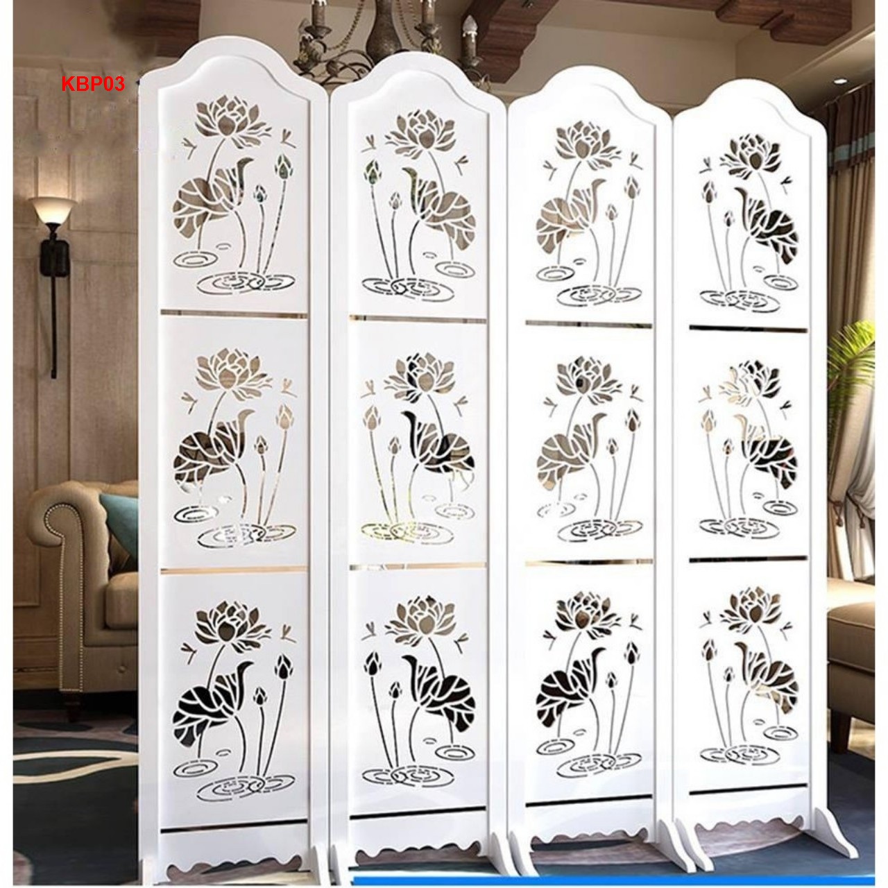 Vách bình phong hoa sen màu vân gỗ sồi #tada #vachnganphong