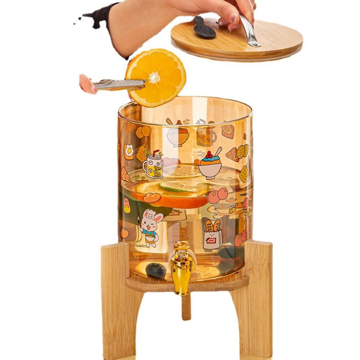 ✨Bình Trà, Bình Đựng Nước Thủy Tinh Stiker 2.5L và 3.5L Có Vòi, Có Nắp Đậy + Tặng Kèm Kệ Gỗ - Bình Pha trà, Nước Trái Cây