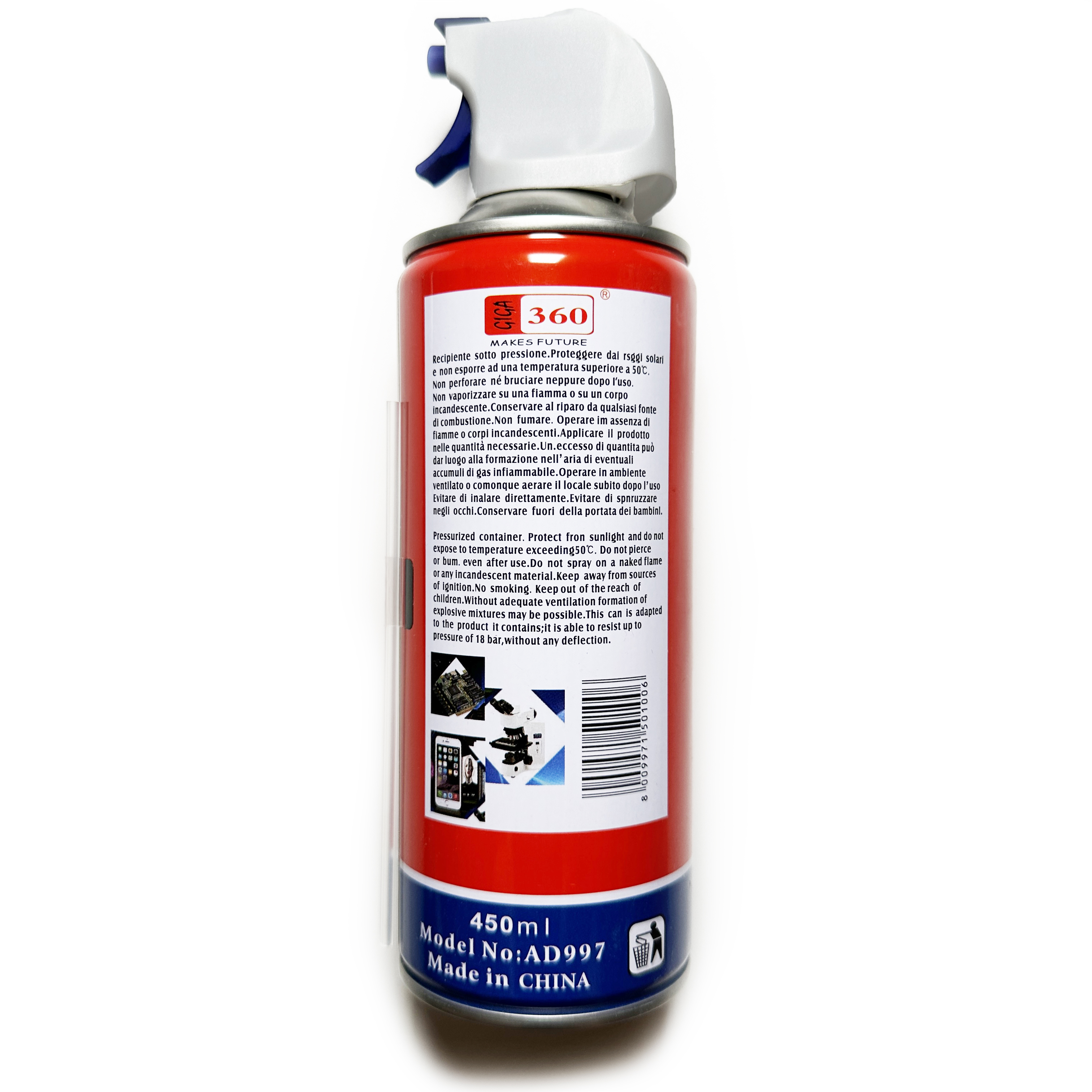 Tên sản phẩm: Bình Xịt Khí Nén khử bụi chống tĩnh điện mạnh mẽ Dung tích: 400ML Hàng chuẩn chính hãng từ Nhà sản xuất, sản phẩm được cấp bằng sáng chế !!! Thời hạn