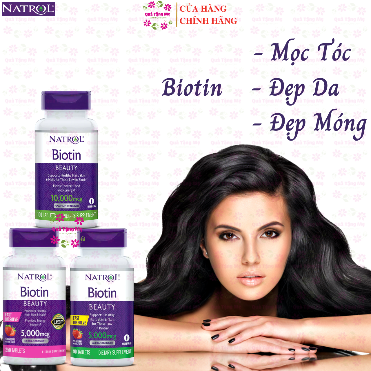 - Biotin còn gọi là Vitamin B7 hay Vitamin H là một dưỡng chất đóng vai trò quan trọng đối với sự tăng trưởng và phát triển của cơ thể. Giúp nuôi dưỡng và kích thích sự phát triển của da, tóc và móng tay cũng như hệ thần kinh và tiêu hóa.