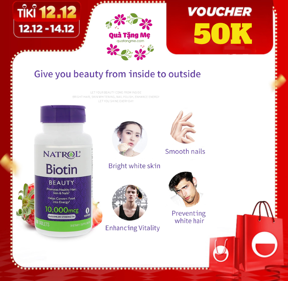 Biotin mọc tóc Natrol Beauty Mỹ hỗ trợ tóc mọc nhanh dài, dày hơn, cho làn da rạng rỡ và móng tay chắc khỏe - QuaTangMe Extaste