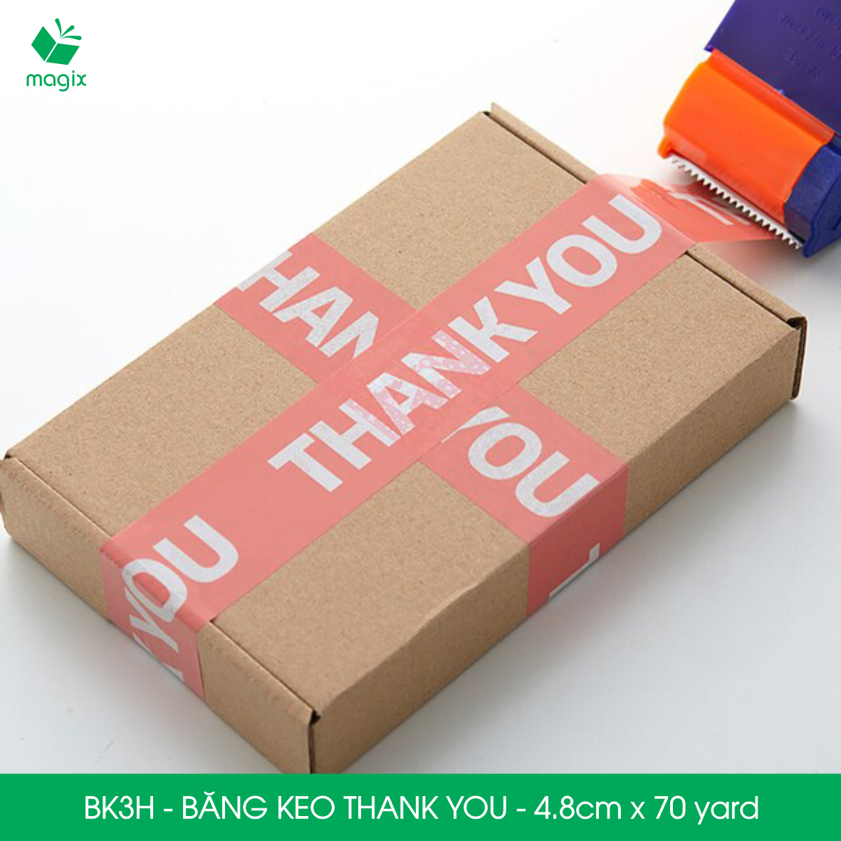 ✨BK3H - 6 Cuộn băng keo in chữ THANK YOU 4.8cm x 70yard băng dính niêm phong hàng dễ vỡ