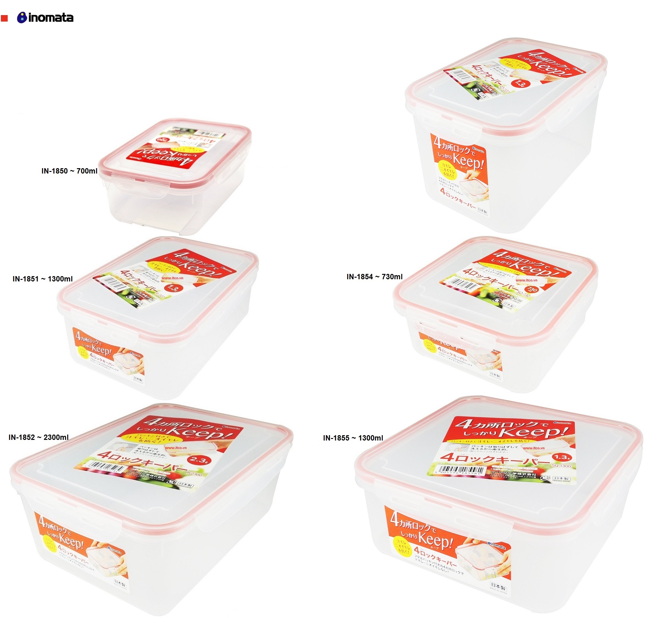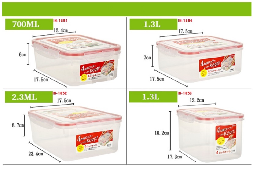 Bộ 03 hộp thực phẩm Vuông inomata 730ml có khóa nắp 4 chiều - hàng nội địa Nhật Bản