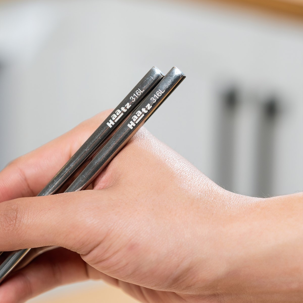 Thiết kế: thân vuông, Đầu đũa được khắc laser chống trượt
