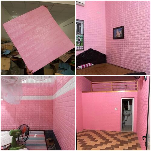 ✨Bộ 15 Tấm Xốp Dán Tường 3D Giả Gạch Màu Hồng Nhạt 70cmx77cm