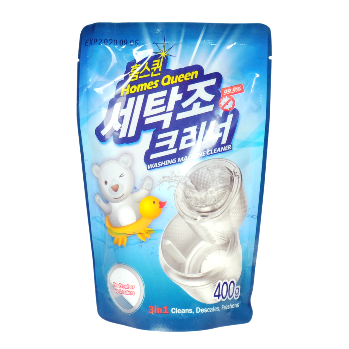 - Bảo dưỡng, làm thông thoáng máy giặt, hạn chế tình trạng tắc nghẽn, tăng tuổi thọ cho máy giặt *Ưu điểm: Bột tẩy lồng máy giặt Homes Queen được sản xuất từ công ty Hàn Quốc với công nghệ tiên tiến và hơn 30 năm kinh nghiệm sản xuất các sản phẩm tẩy rửa đồ dùng nhà cửa, không cần tháo lắp máy giặt vẫn có thể vệ sinh máy sạch sẽ. Sản phẩm được chứng nhận an toàn với người sử dụng và môi trường, dùng được cho cả máy giặt lồng ngang, lồng đứng, 1 gói 400gr dùng 1 lần cho máy giặt từ 7~12kg. Quý khách nên vệ sinh lồng máy giặt sau 30-40 lần giặt để đảm bảo máy giặt sạch sẽ, hạn chế vi khuẩn, nấm mốc.