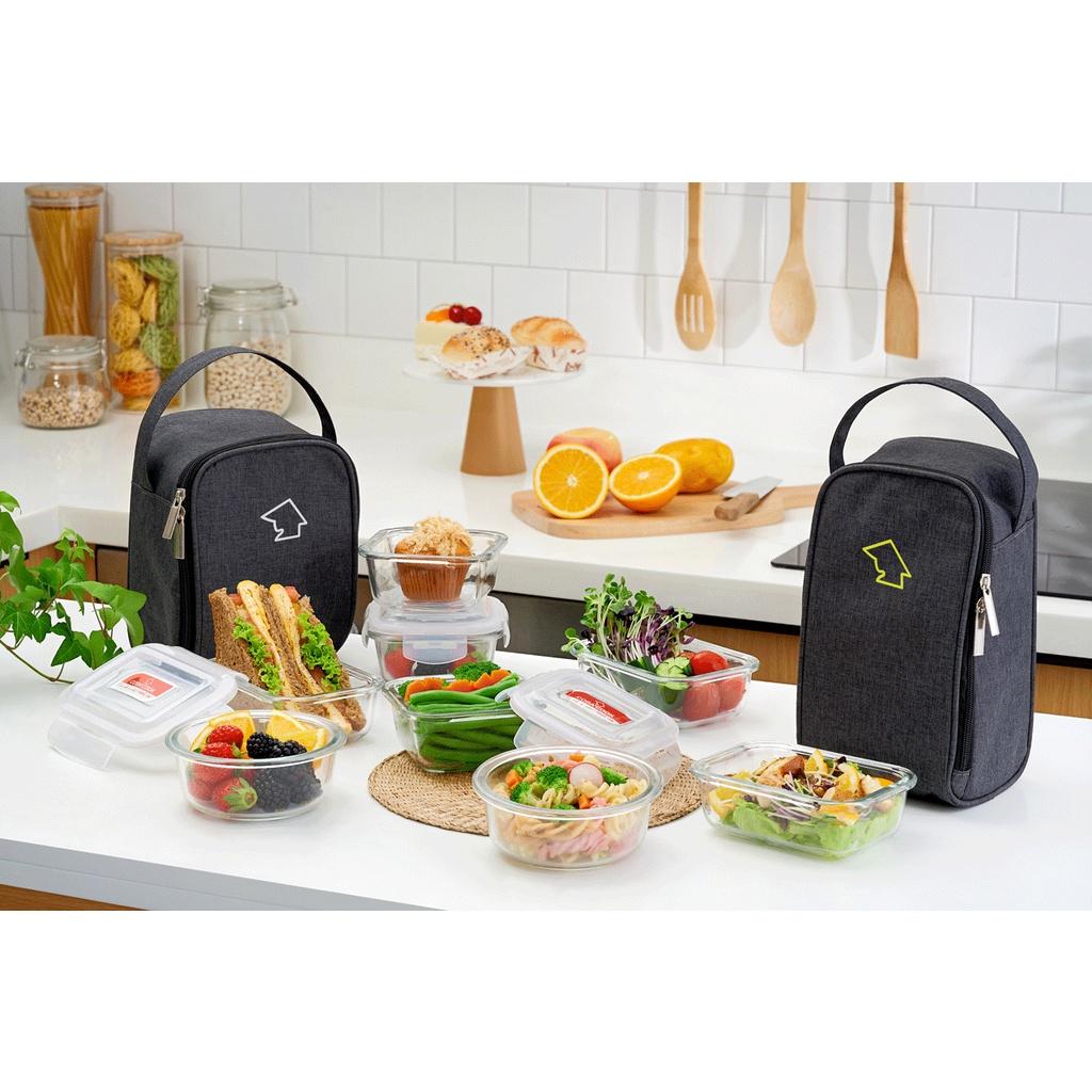 Túi đựng cơm thiết kế phong cách mới , kết hợp 2 khóa kéo tiện dung, dễ dàng lấy hộp thủy tinh từ trong túi ra bên ngoài