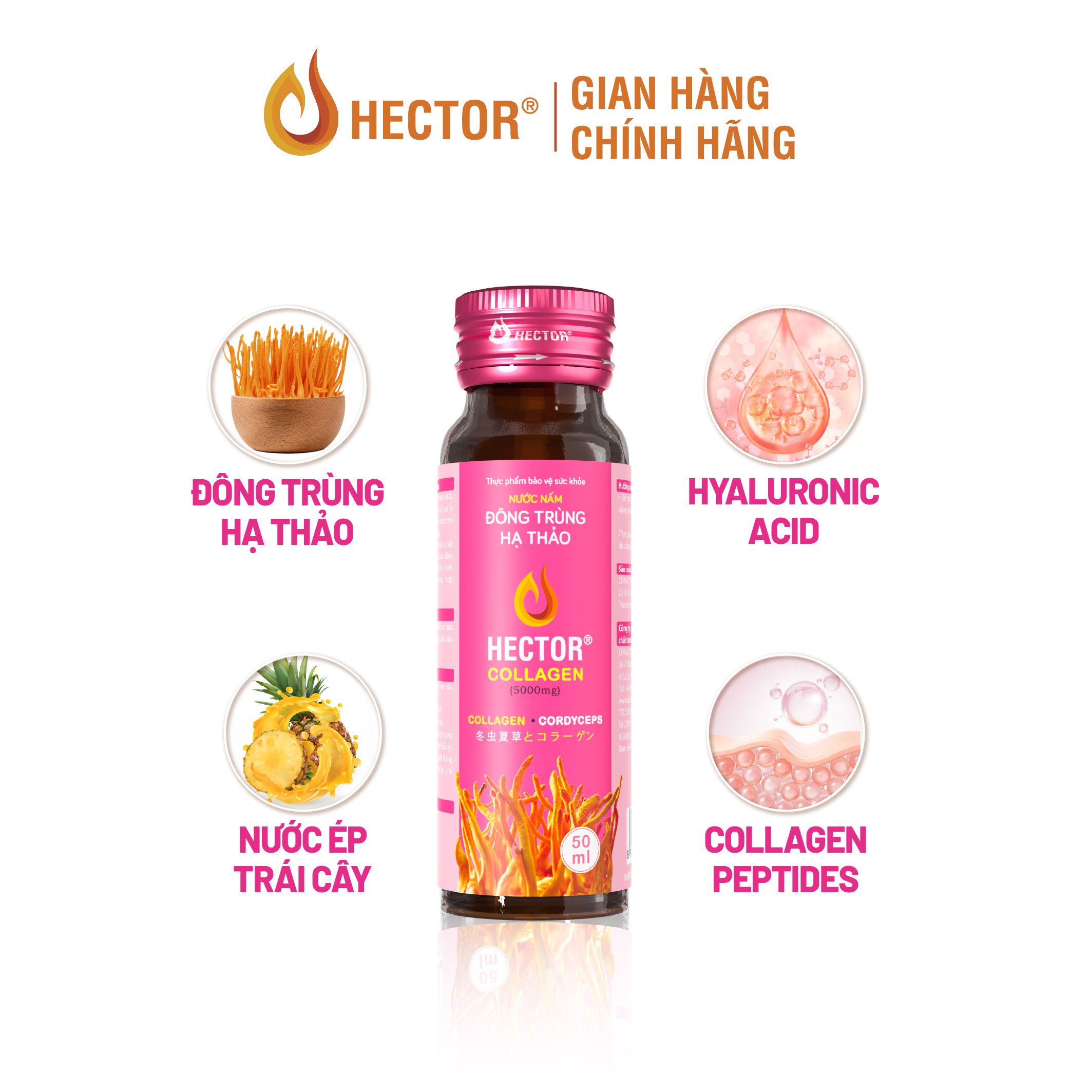 Công dụng của Nước Đông Trùng Hạ Thảo Hector Collagen - Nước đông trùng hạ thảo Hector Collagen bổ sung collagen, kích thích cơ thể sản sinh collagen làm đẹp da và ngăn ngừa lão hóa.