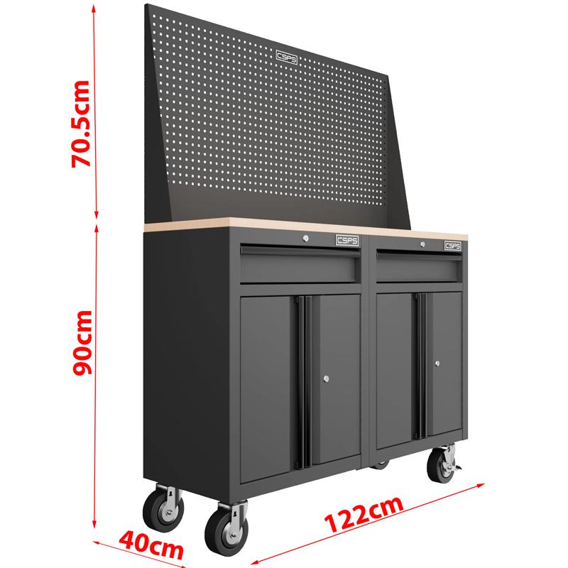 Bàn dụng cụ cao cấp thương hiệu CSPS được ưa chuộng tại Mỹ; Sản xuất theo tiêu chuẩn Mỹ và quản lý chất lượng ISO9001:2015; Kích thước bàn: 117cm Rộng x 65 1cm Sâu x