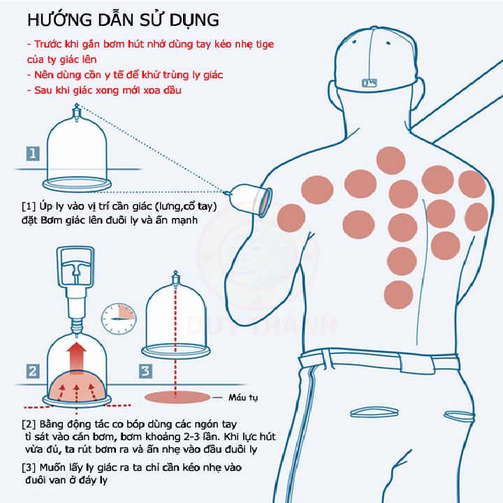 Giác hơi là một phương pháp cổ truyền của Đông - Y Dược được áp dụng trong việc hỗ trợ các chứng đau lưng, đau đầu, cảm cúm, nhức mỏi .Sử dụng sản phẩm GIÁC HƠI KHÔNG DÙNG LỬA của công ty DUY THÀNH sẽ rất an toàn (không bị phỏng), không lo truyền nhiễm, tiện lợi cho gia đình và du lịch.