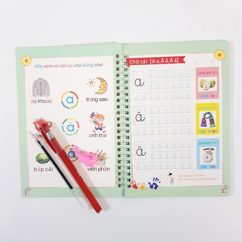 Sản phẩm dành riêng cho trẻ em Việt Nam. Lưu ý: Shop có tách riêng các lựa chọn: - Vở Luyện chữ: tặng 1 bút, 3 ngòi và 1 cá cầm bút; - Vở Luyện