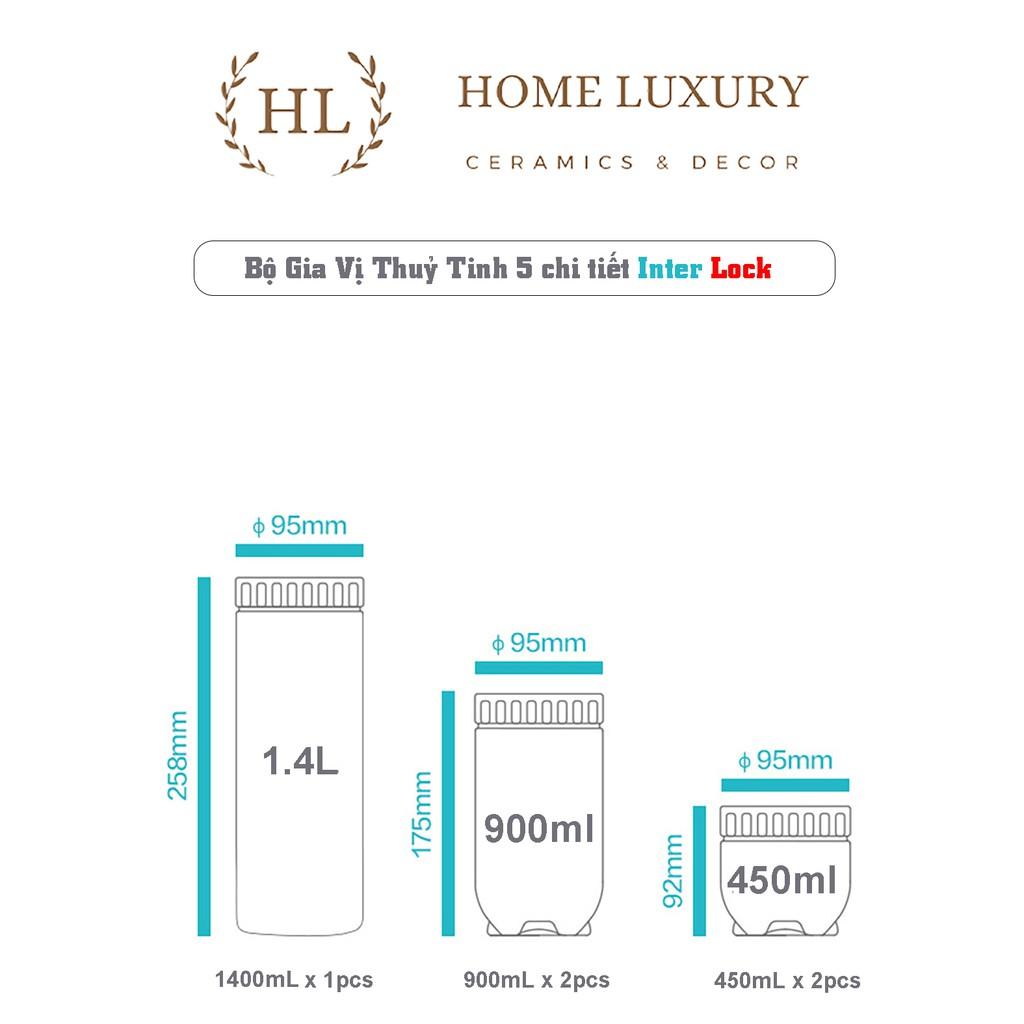 ✨BỘ 5 HŨ THỦY TINH NẮP NHỰA INTERLOCK KHÁNG KHUẨN | HŨ THỦY TINH 5 CHI TIẾT THÔNG MINH