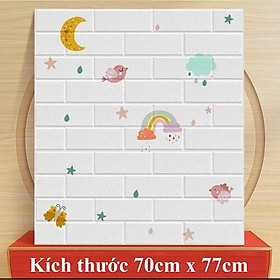 Độ dày chuẩn : 3mm Kích thước: 70*77 ( ngang 70cm, cao 77cm) Sẵn keo ở mặt sau, lột ra là dán Công dụng tấm xốp : ️Dán che khuyết điểm tường mốc,