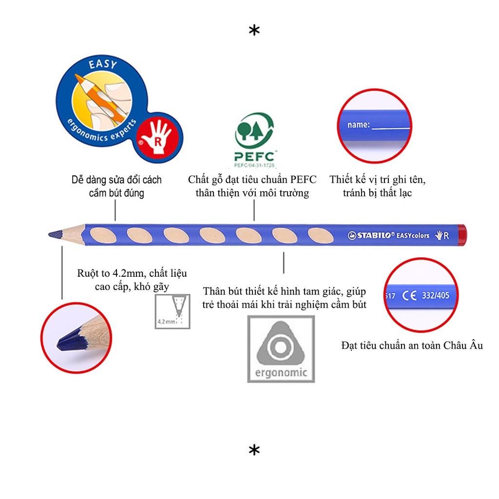 ✨Bộ 6 cây bút chì màu STABILO EASYcolors, thuận tay trái (CLE33L/6) - Xanh dương (405)