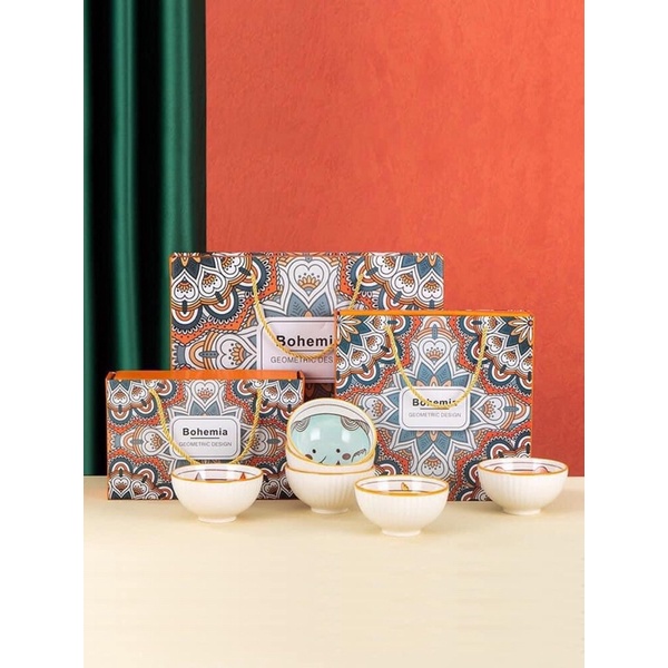 Set gồm : 6 bát + 6 đôi đũa. Bát dày dặn dễ thương kèm túi hộp có quai cực kỳ đẹp mắt và lịch sự, rất thích hợp làm quà tặng.