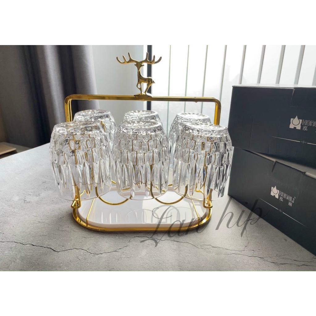 ✨BỘ 6 CỐC THỦY TINH UỒNG NƯỚC KÈM GIÁ ÚP CỐC HÌNH ĐẦU HƯƠU