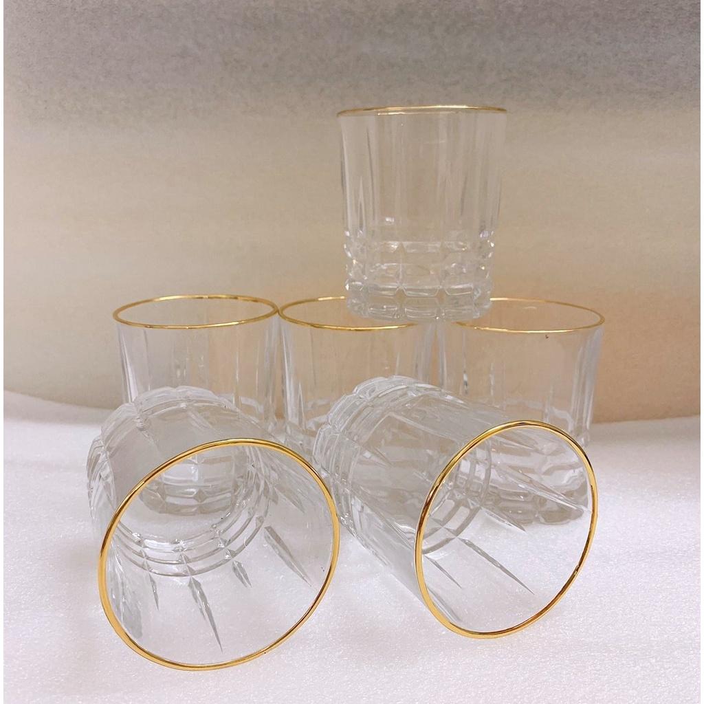 ✨Bộ 6 ly thủy tinh chịu nhiệt uống nước viền vàng vân đáy