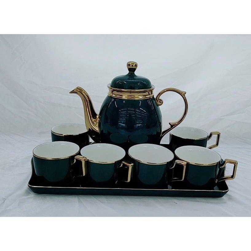 ✨BỘ ẤM CHÉN KÈM KHAY SỨ MÀU XANH NGỌC VIỀN VÀNG DÁNG BẦU