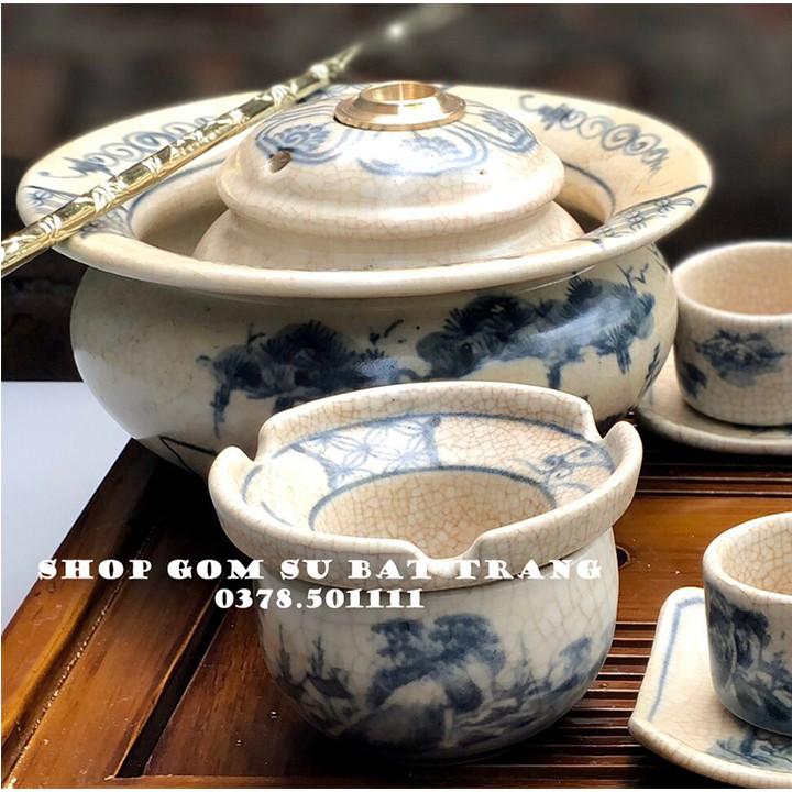 - Bộ ấm chén men rạn chân chim - Gốm sứ Bát Tràng - Dung tích 350ml - 1 ấm 6 chén 7 đĩa kê - Giá 350k