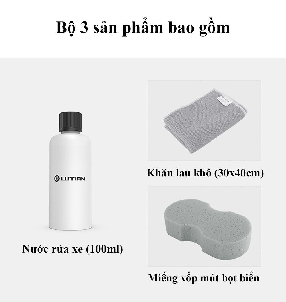✨Bộ Ba Dụng Cụ Rửa Xe Lutian Bao Gồm Nước Rửa Xe (100ml), Khăn Lău Khô (30x40cm), Miếng Xốp Mút Bọt Biển Bộ Sản Phẩm Chuyên Dùng Để Dọn Dẹp Rửa Ô Tô, Xe Máy – Hàng Chính Hãng