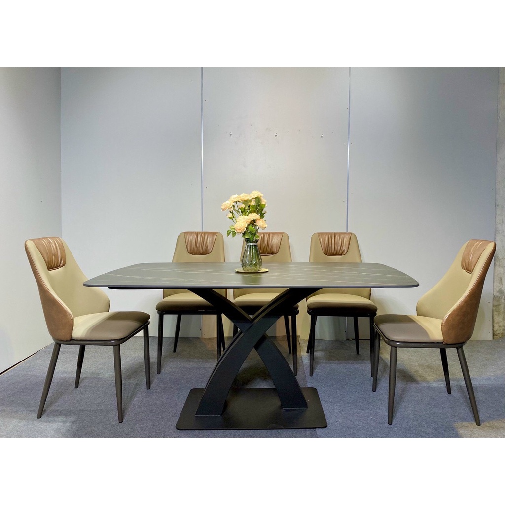 ✨Bộ bàn ăn mặt đá nhập khẩu chân chéo kết hợp ghế Spot