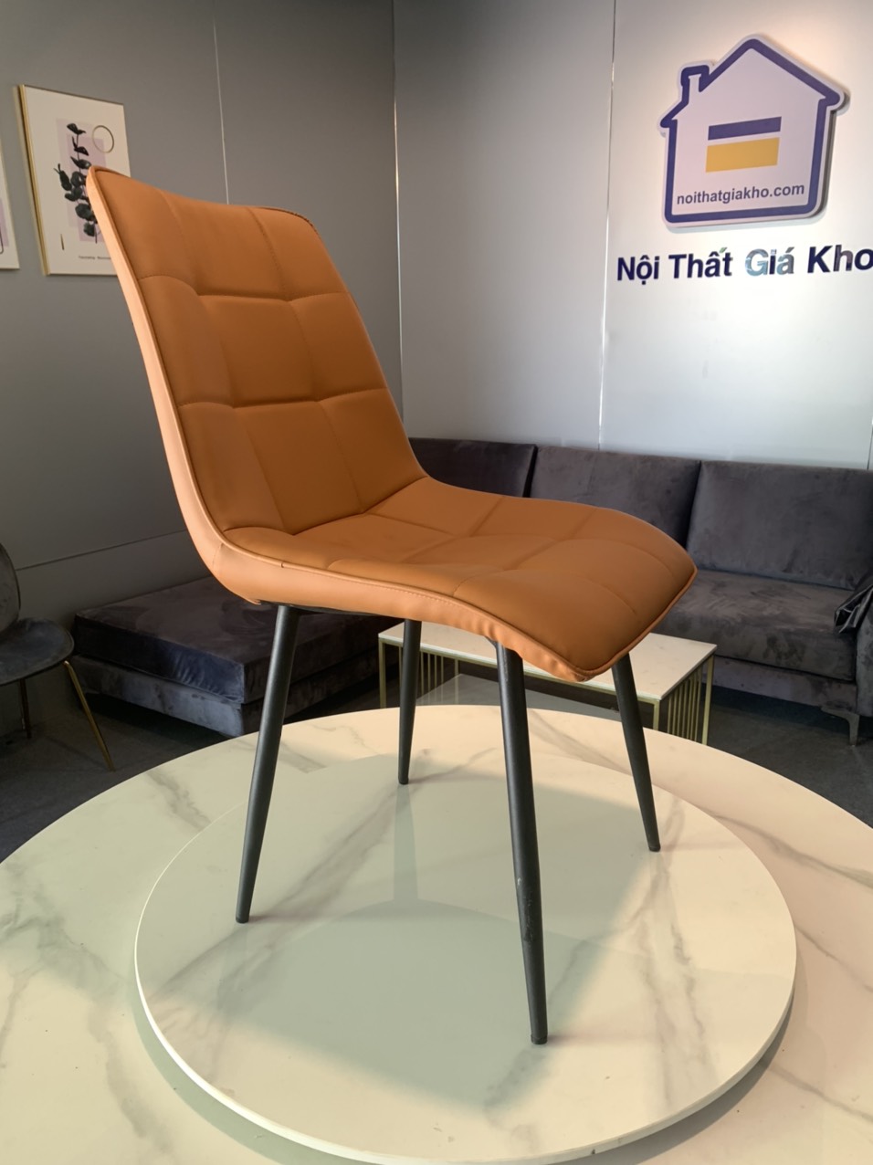 *** Quý khách hàng vui lòng chọn sản phẩm nhà bán JUNO SOFA để nhận được sản phẩm đúng với chất lượng *** Ghế nệm bọc da simili chân sắt mạ vàng. Kích thước Bàn