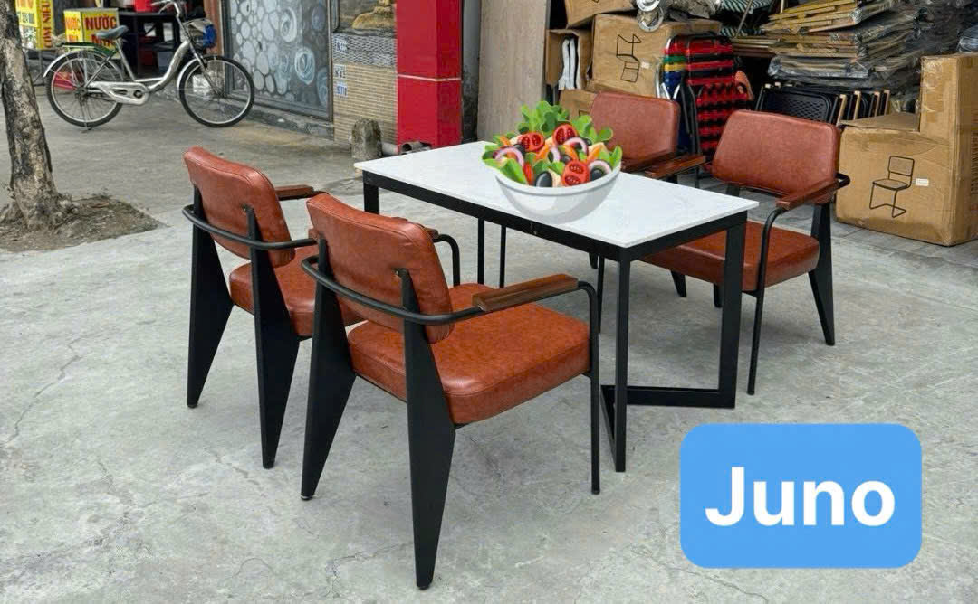 ✨Bộ bàn cafe sắt 4 ghế kèm nệm sang trọng hiện đại Juno Sofa