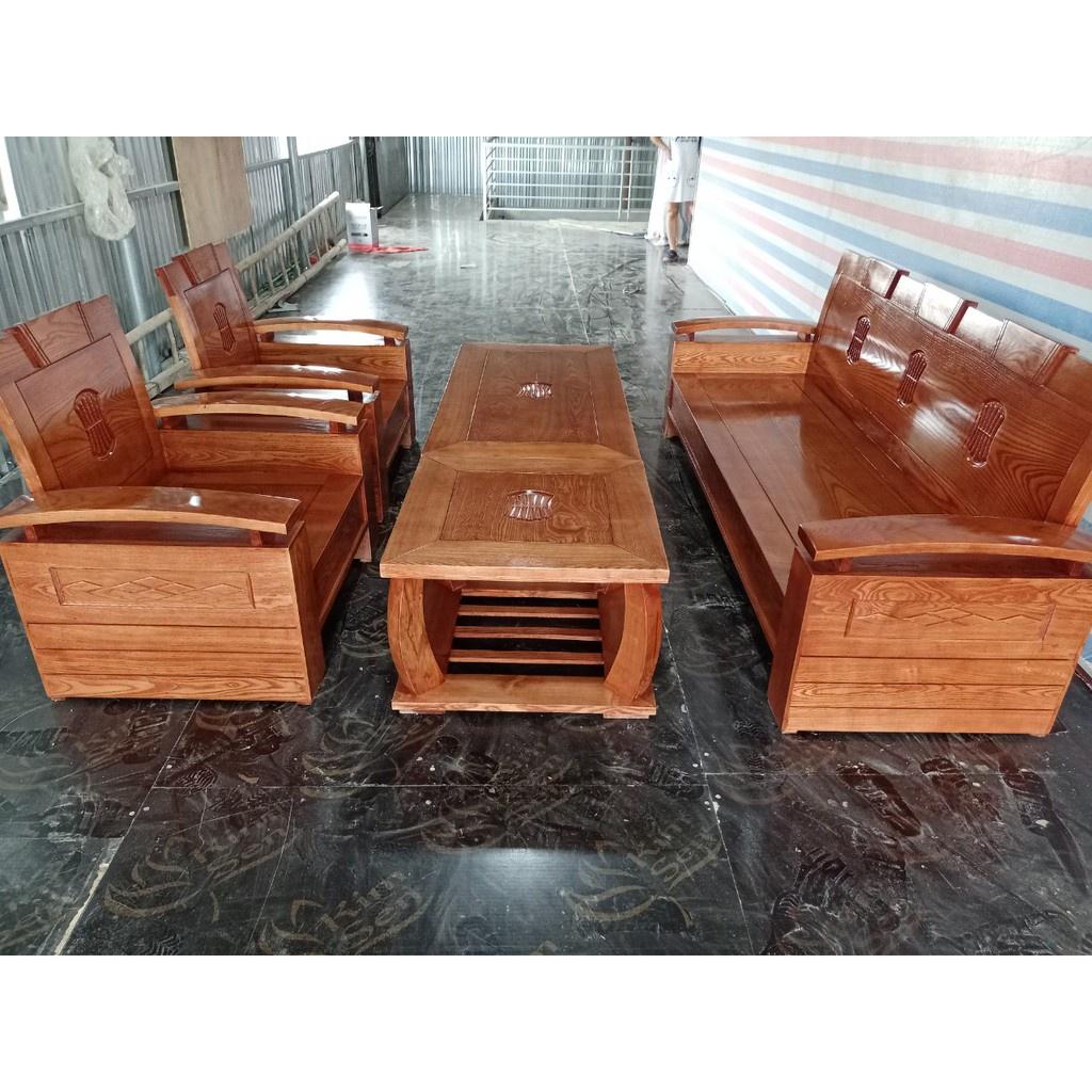Bộ bàn ghế Sofa phòng khách gỗ sồi giá 19 triệu cả đệm và kính.
