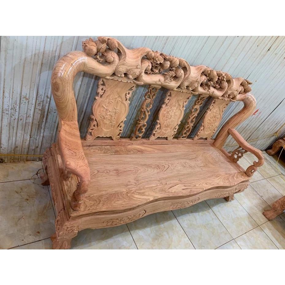 Nội thất Bình Long xin giới thiệu bộ bàn ghế quốc đào tay 10 gỗ hương đá nam phi bộ sản phẩm bao gồm 6 món: - 1 bàn 65 x130cm - 1 ghế dài 185cm x 60 2 ghế đơn 80cm x 60 1 đôn 35 x 35 1 bàn kẹp 40 x 60