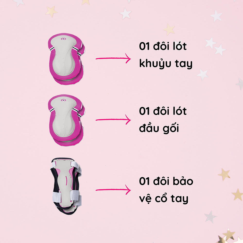 Bộ bảo hộ bao gồm: 01 đôi bảo vệ cổ tay + 1 đôi lót khuỷu tay + 1 đôi bảo vệ đầu gối