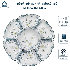 ✨Bộ Bát Đĩa Gốm Sứ Cao Cấp, Hoa Mặt Trời Thắp Hương, Cúng Gia Tiên Hoa Thủy Tiên - HÀNG CHÍNH HÃNG MINIIN