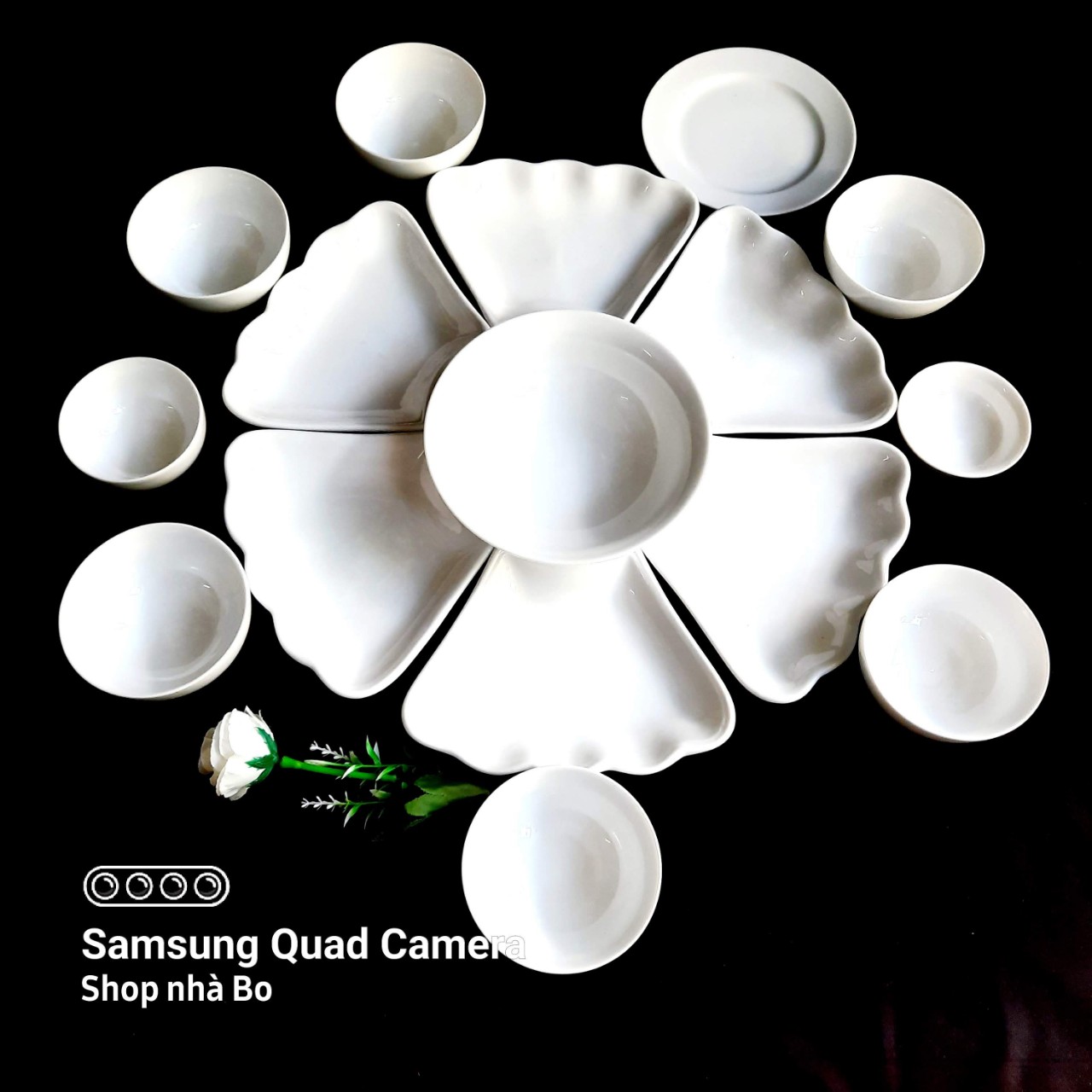 Set đĩa hoa mặt trời gốm sứ Bát Tràng cao cấp men trắng sang chảnh 1 set gồm : 1 bát tô , 6 đĩa cánh hoa , 6 bát cơm, 1 bát mắm ,