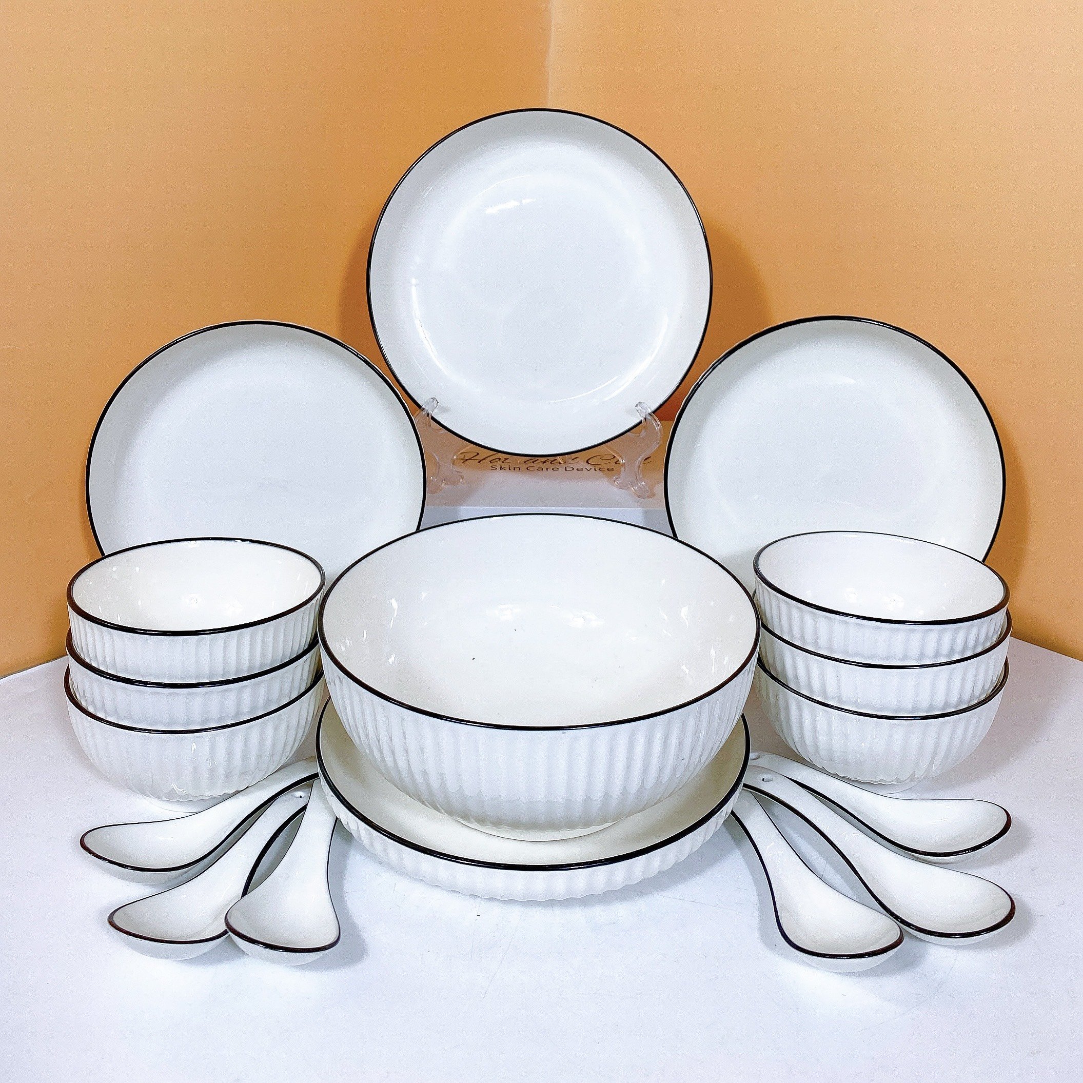 Bộ bát đĩa gốm sứ Bát Tràng cao cấp men trắng 23 chi tiết như hình