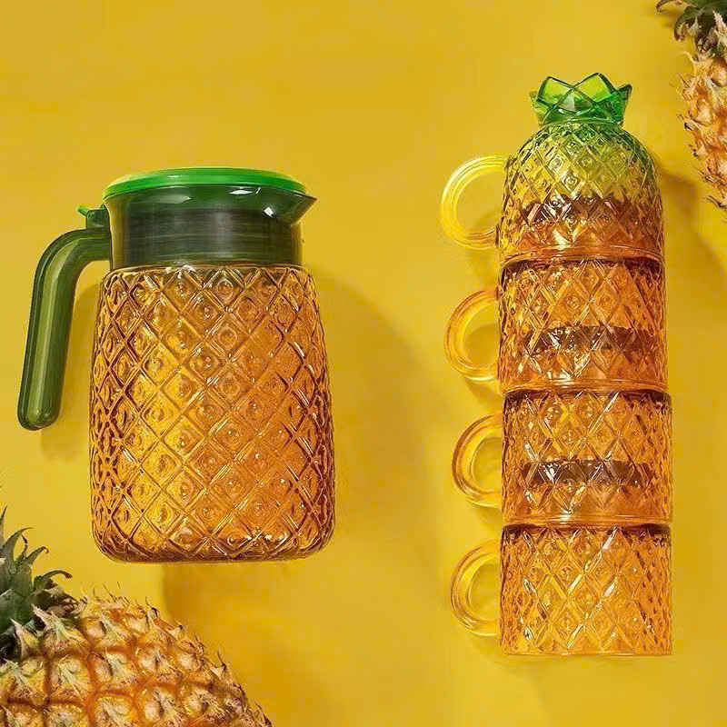 ✨Bộ Bình 4 Cốc Ly Thủy Tinh Hình Quả Dứa Màu Hổ Phách, Bình Chịu Nhiệt Tốt, Trang Trí - HÀNG CHÍNH HÃNG MINIIN