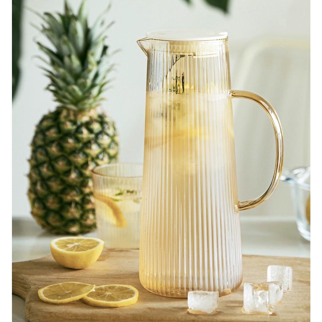 Bình Thuỷ Tinh Đựng Nước Quai Cầm Kim Cương EH1028 Glass Pitcher Diamond Shape Striped Jar 1300 ML