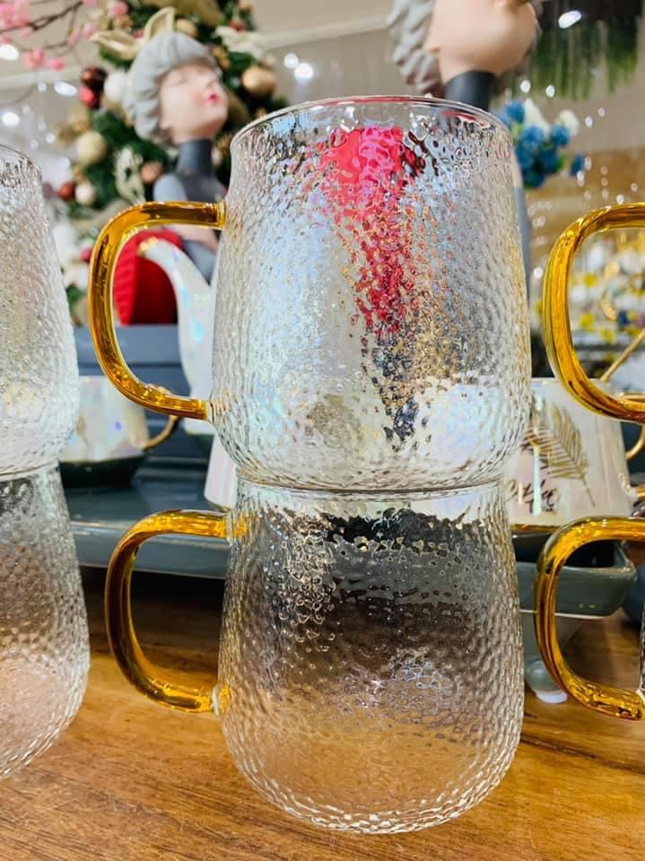 ✨BỘ BÌNH THỦY TINH CHỊU NHIỆT CAO CẤP ĐỰNG NƯỚC UỐNG KÈM 6 CỐC QUAI VÀNG ( 1 BÌNH + 6 CỐC) - VD6