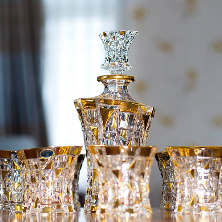 Bộ ly rượu Whisky pha lê vẽ vàng 24k siêu hiếm - Bohemia của Tiệp