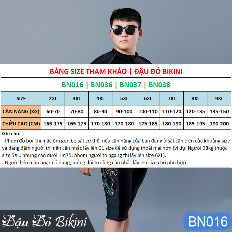 - Mẫu đồ bơi nam size lớn với chất vải cao cấp và thiết kế manly, chống nắng toàn thân. - Áo cổ cao có khóa kéo tiện dụng khi sử dụng, phối đường cắt
