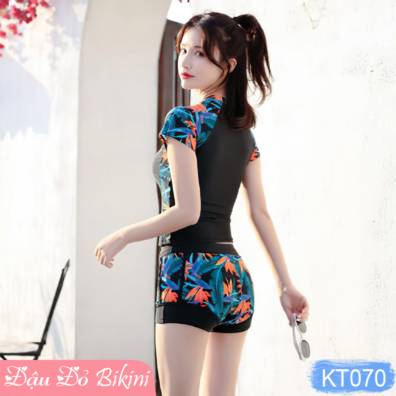 Bạn đang tìm kiếm một bộ đồ bơi vừa phong cách vừa vừa dùng cho những chuyến đi biển hay bơi lội? Bộ bơi 2 mảnh quần short nữ với áo cộc tay KT070 của