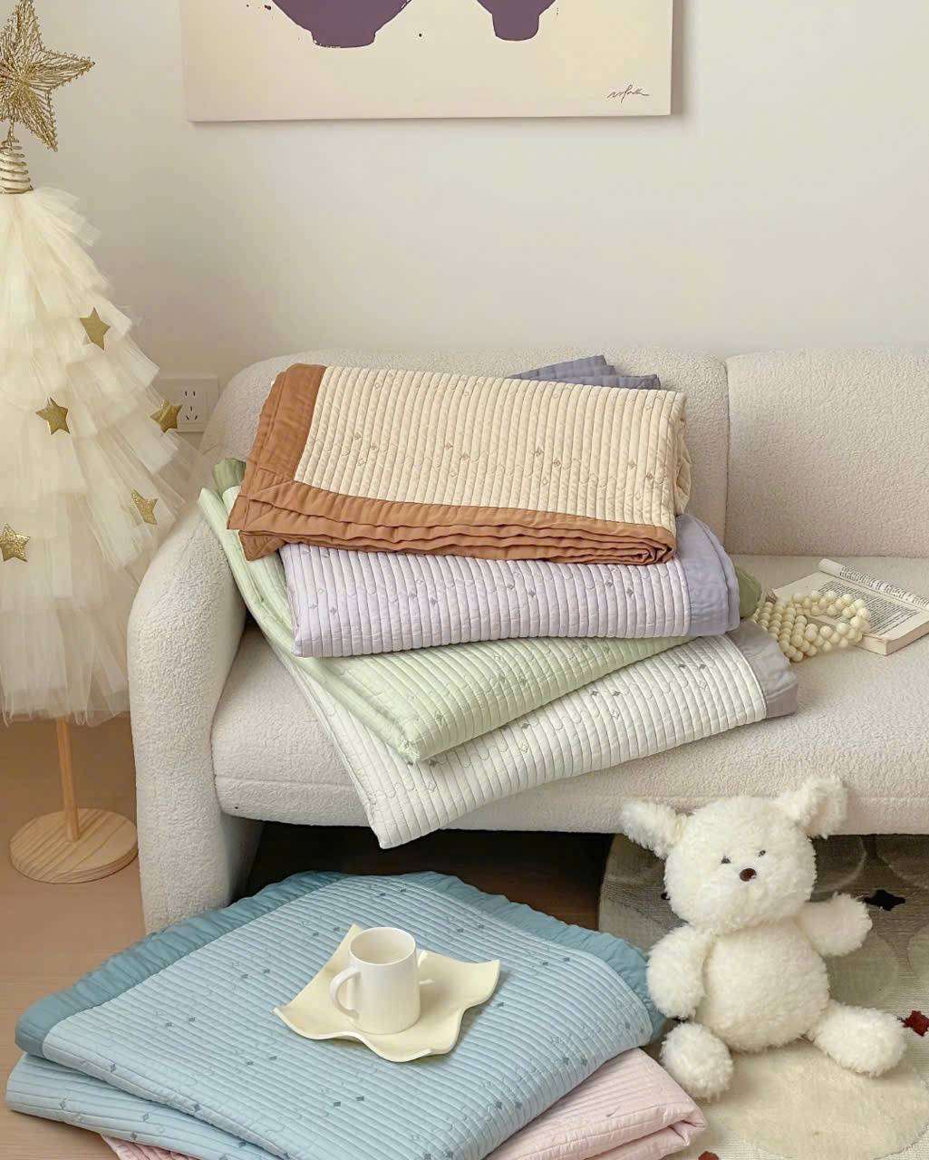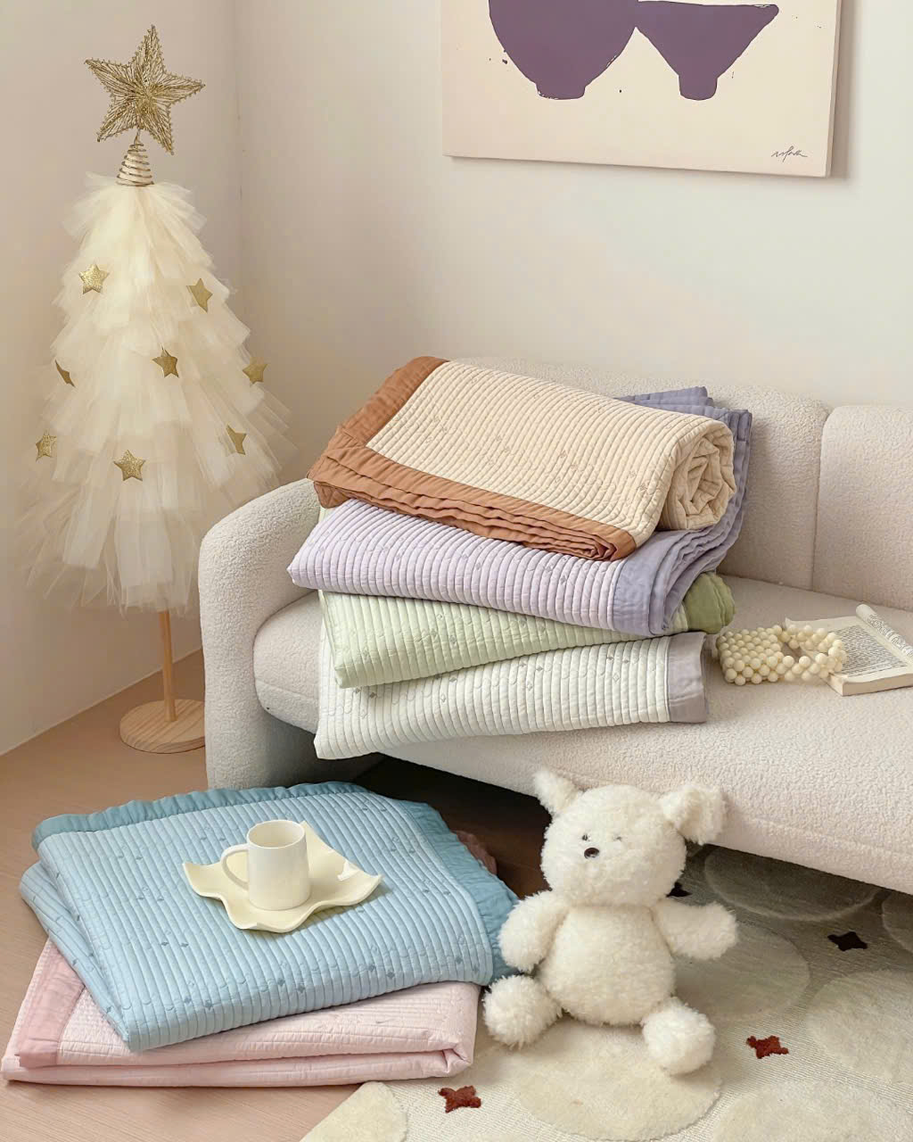 ️Lần đầu tiên ra mắt trên thị trường chăn ga gối, thảm nỉ thông minh với thiết kế thêu hoạ tiết trám nổi với lớp bông gòn cực kỳ êm ái. ️Thiết kế với chân