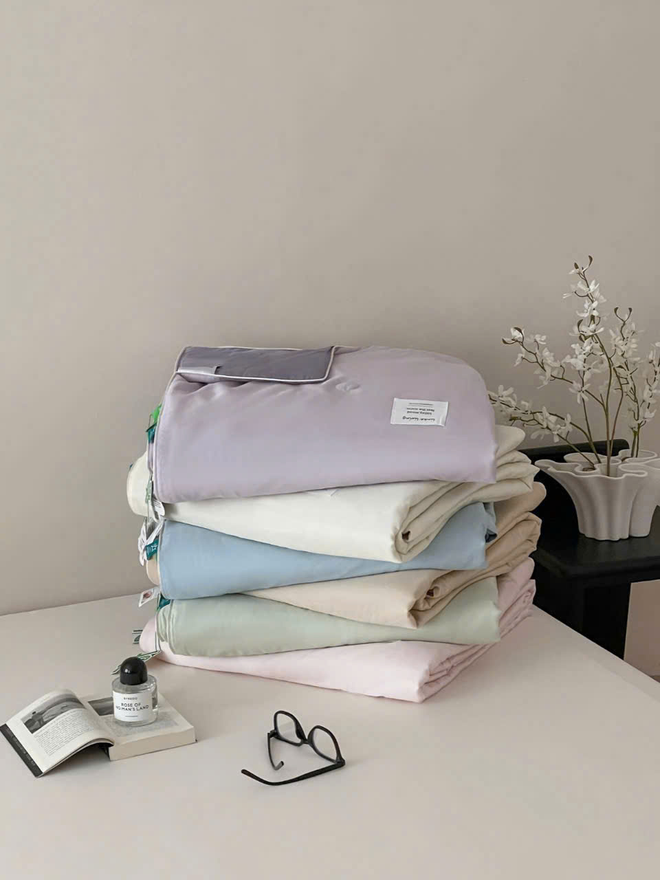 Bộ chăn ga Phi Lụa chăn hè Chanitel - Set 4 món nhập khẩu cao cấp Sản phẩm gồm: 1 CHĂN HÈ CHẦN BÔNG 1 GA BỌC NỆM 2 VỎ GỐI NẰM Các bạn muốn