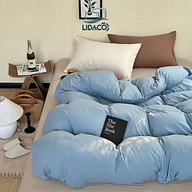 ✨Bộ chăn ga gối cotton tici LIDACO notag - Xanh ga be