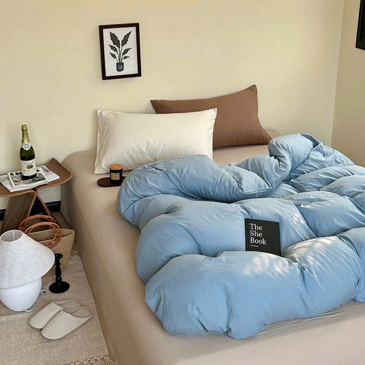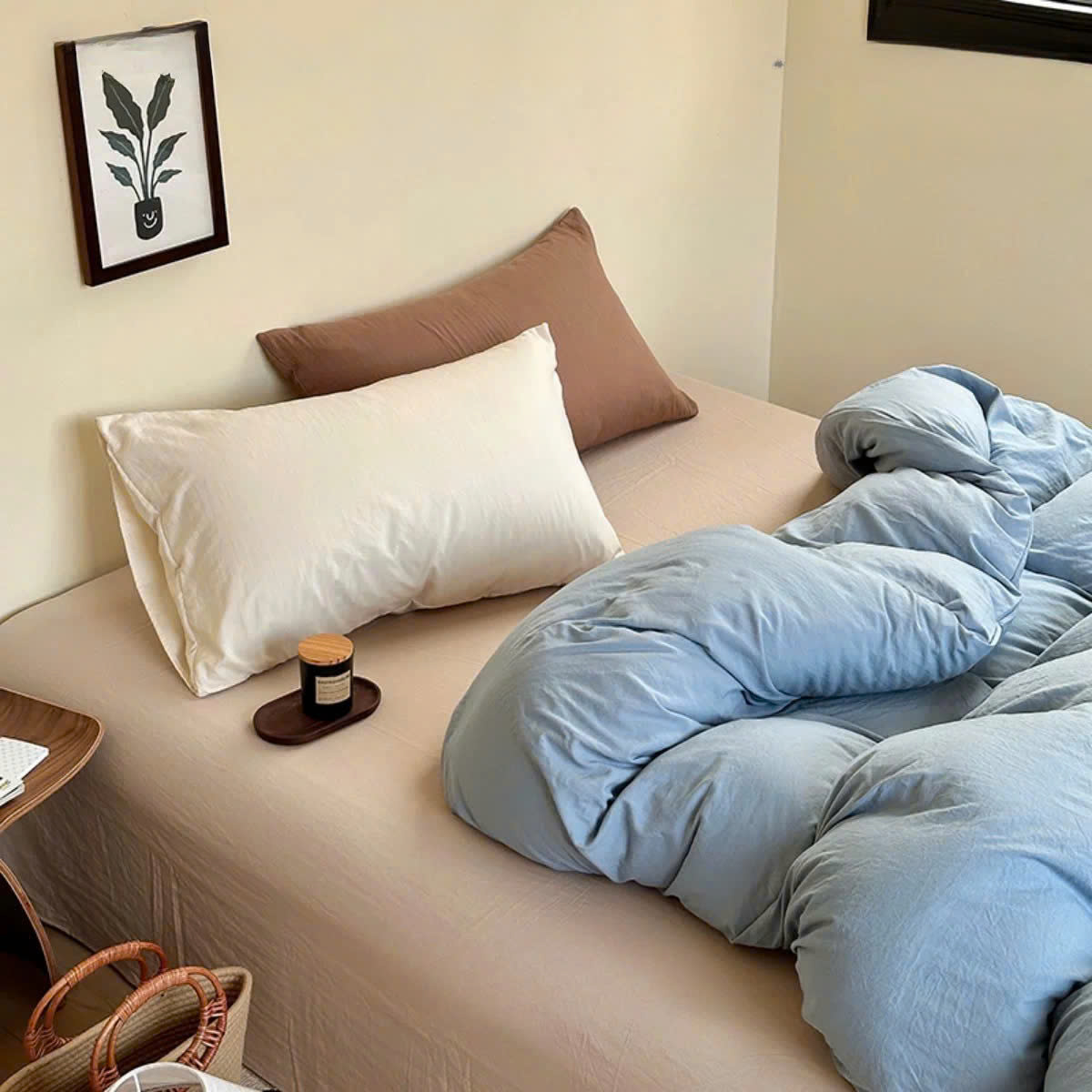 Bộ Chăn Ga Gối Đũi Dúm Cotton Tici nhập khẩu từ Hàn Quốc 6 màu siêu mềm mịn