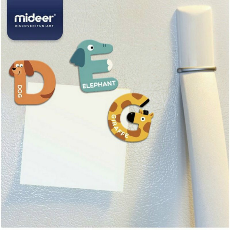 Mua tại TiktokGiới thiệu Mideer Magnet Letters- Bảng chữ cái, chữ số nam châm Mideer cho bé từ 2 tuổi trở lên học chữ cái nhận biết con vật và ghép từ đơn giản. Để nhớ chữ thông qua việc liên tưởng đến những con vật dễ thương, màu sắc tươi đẹp, bố mẹ hãy sắm ngay cho bé yêu bảng chữ cái các con vật có Nam Châm này nhé Mỗi chữ cái biểu trưng cho một loài động vật và có tên tiếng Anh phía trên. Bé học tiếng Anh, học chữ cái nhanh nhớ, dễ liên tưởng, không áp lực mà lại nắm từ dễ dàng