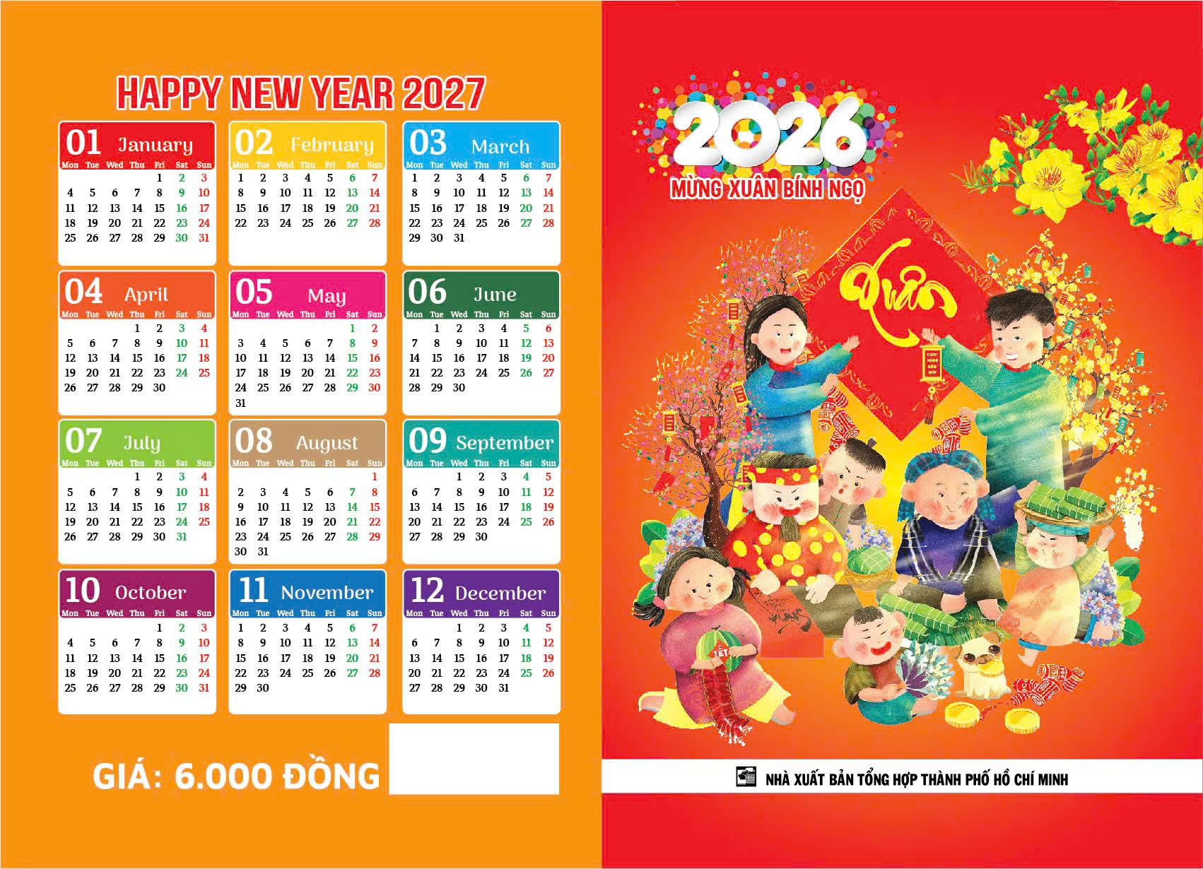 Lịch Bloc Cực Đại 2026 - Sắc Màu Thế Giới - Hạnh Phúc - Đại Việt Á DVA08 - Chữ Lộc - Lịch bloc giúp bạn nắm rõ ngày dương, ngày âm, tiết khí, giờ