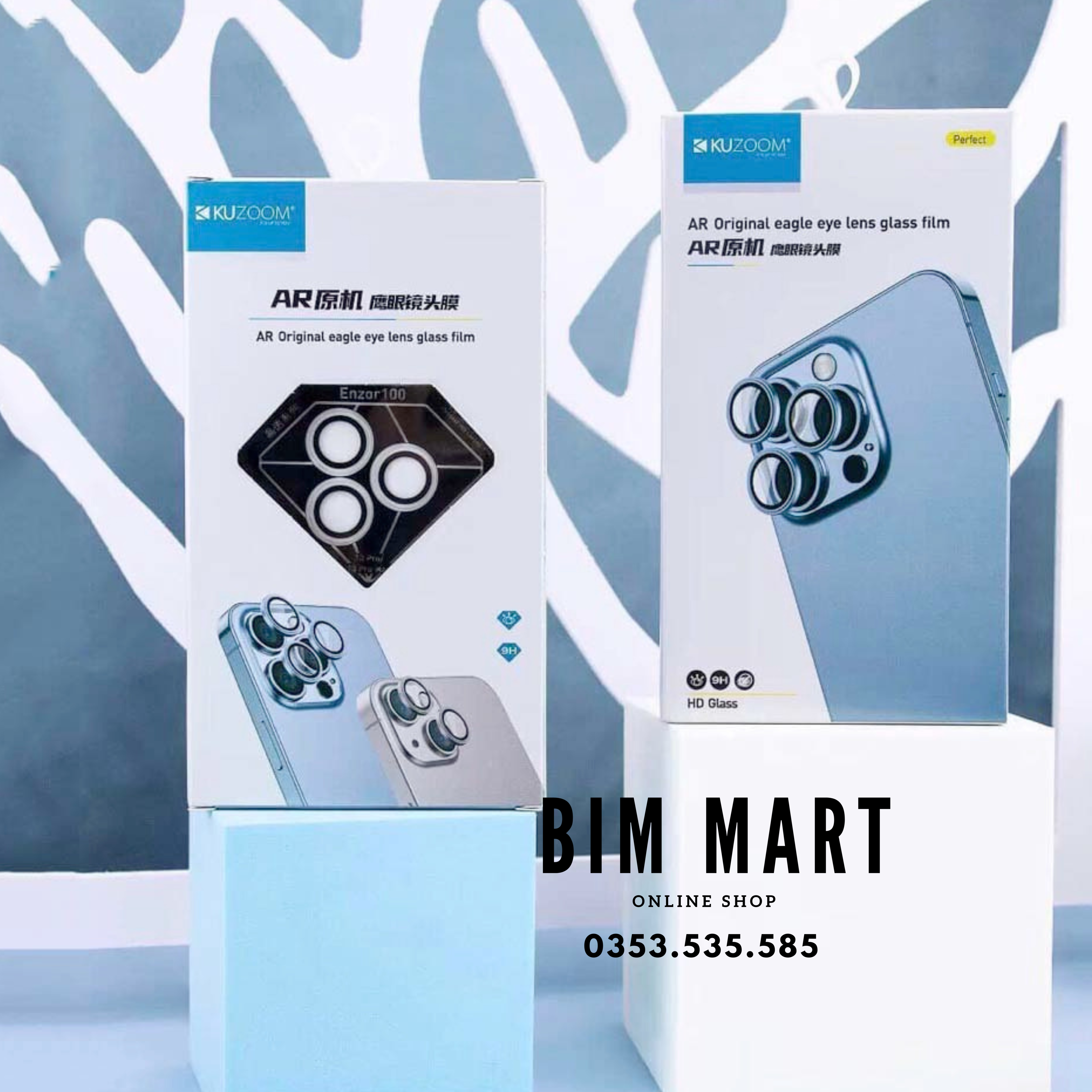 Bộ dán bảo vệ 3 mắt camera Kuzoom cho iPhone 14/14 Plus/14 Pro/14 Pro Max có khung được làm từ hợp kim nhôm chắc chắn phủ kín vòng mắt camera , mặt kính 3 lớp